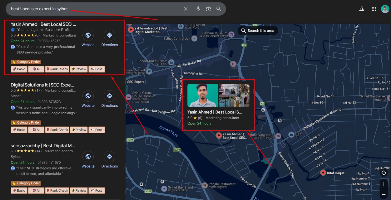 If you search Google by writing “Best SEO Expert in Sylhet” then you will find my Google Business Profile at the top 3 places. You don’t have to trust me, trust Google.